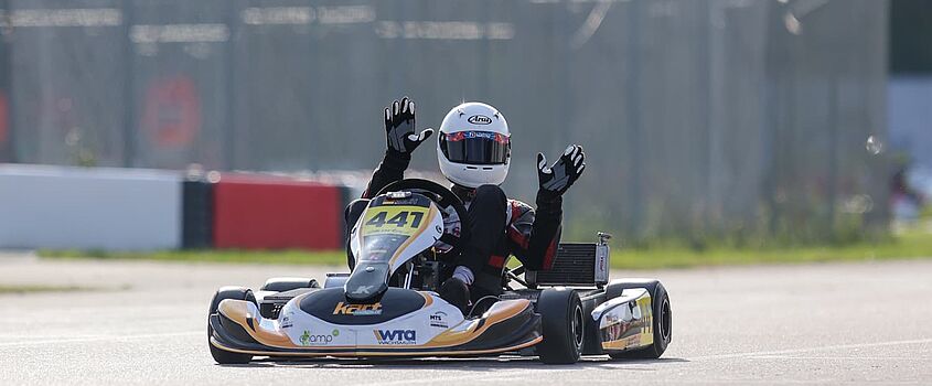 Am Sonntag setzte Julien seine Erfolgsfahrt im Anschluss nahtlos fort. Diesmal ließ der ambitionierte Kartfahrer zu keinem Zeitpunkt auf dem hochmodernen Kurs etwas anbrennen, ergatterte im Qualifying erneut Startplatz eins und gewann gleich beide Rennläufe.